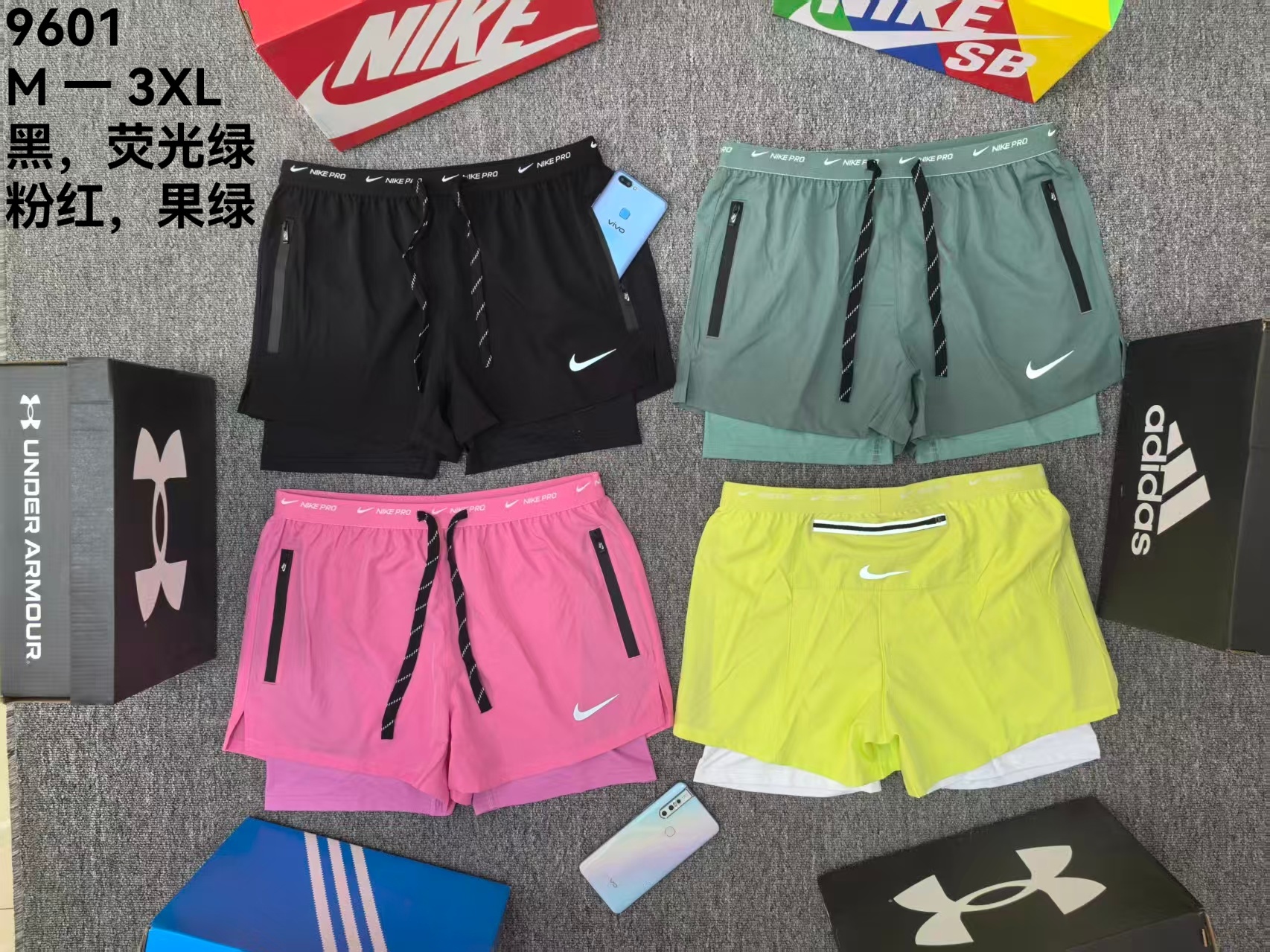 9601#Men’s sports double-layer shorts jogging pants fitness pants